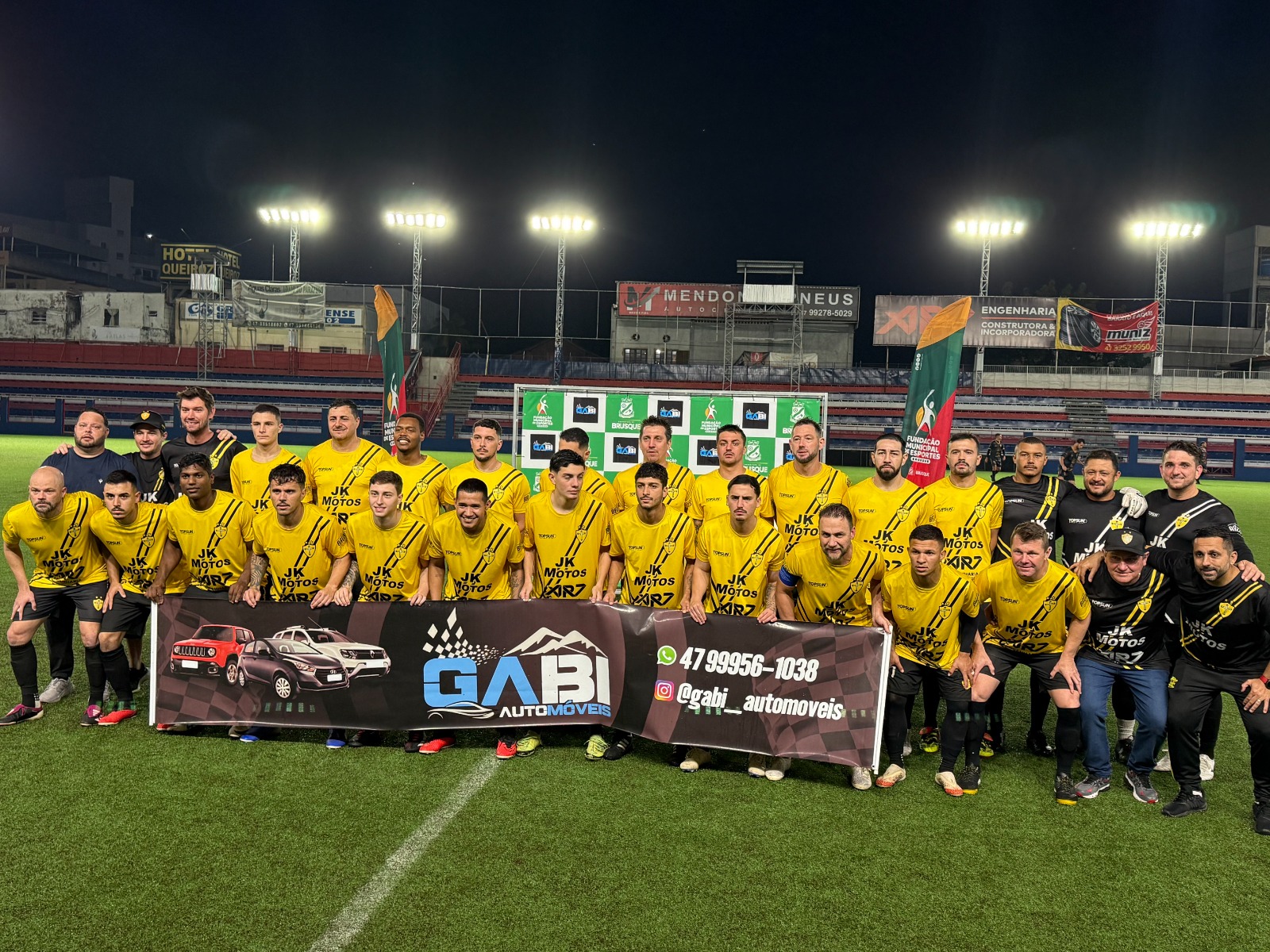 O Estádio Augusto Bauer foi palco de uma tarde/noite memorável neste sábado (26), com a grande final do Campeonato Municipal de Futebol Amador de Brusque – Taça Gabi Automóveis 2025. A decisão reuniu duas grandes forças da competição, Abresc/JK Motos e Mecânica do Japa. Antes da grande final, Santos Dumont e Santa Cruz disputaram o terceiro lugar da competição.