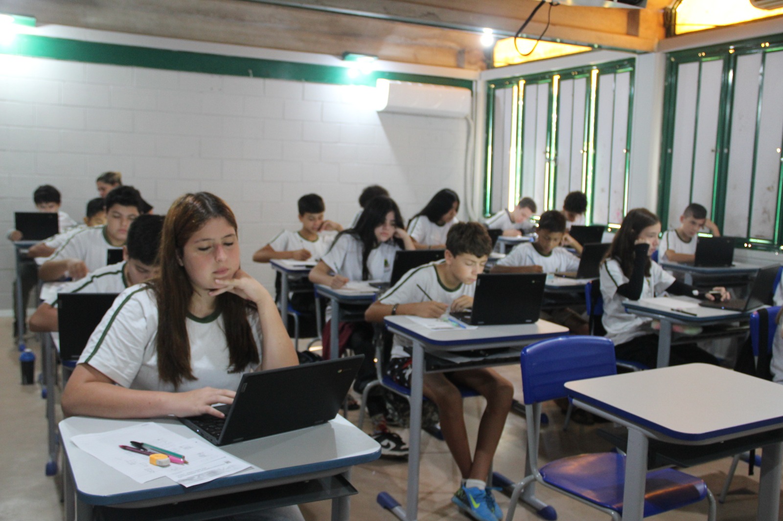 Em Brusque, as crianças da Rede Municipal de Ensino respondem às provas por meio do chromebook, sem necessidade de impressão do material. As questões são objetivas e discursivas e envolvem as disciplinas de português, matemática e ciências.