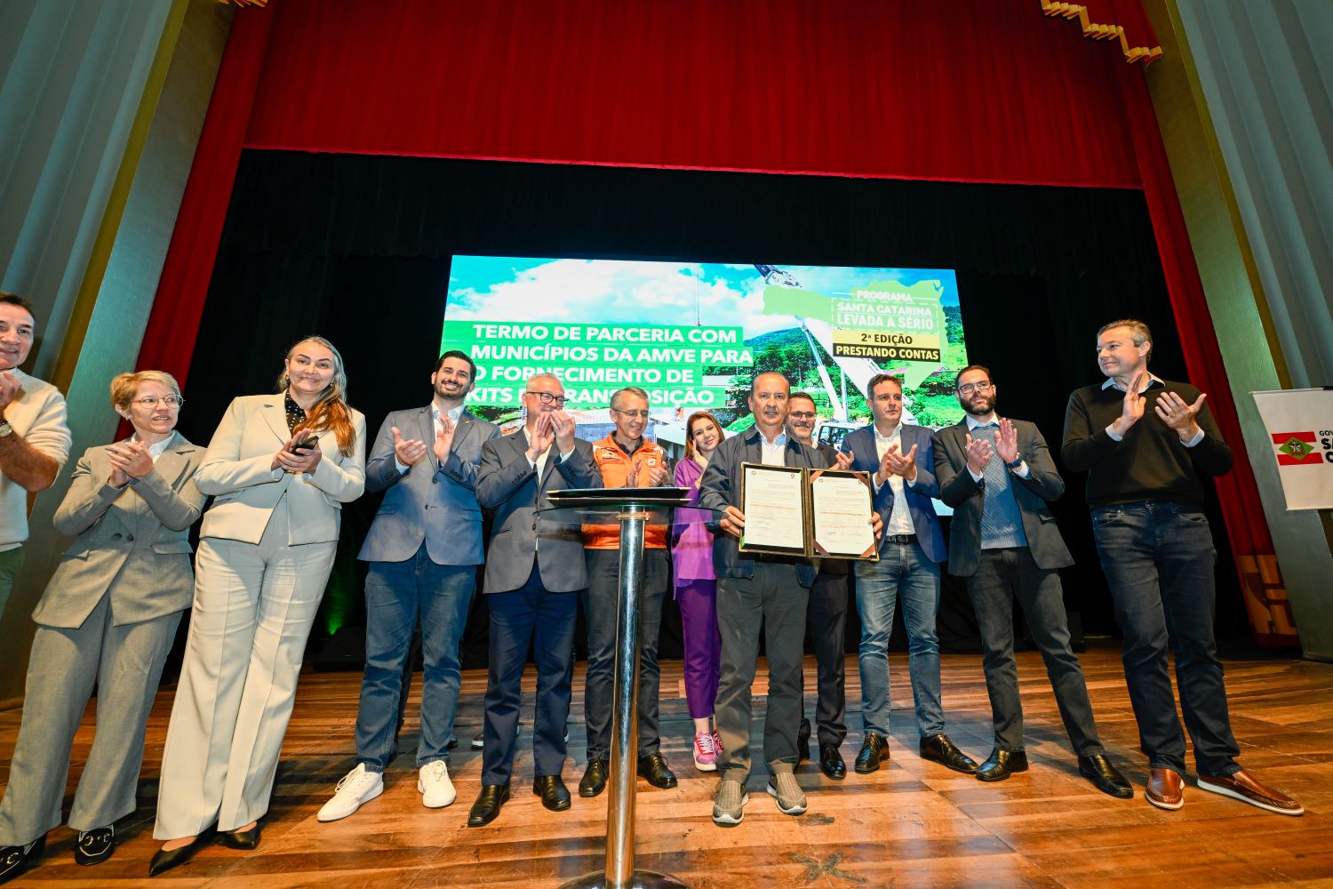 Em Blumenau, o evento ocorreu no Teatro Carlos Gomes e contou com a presença de autoridades, convidados e a participação dos 14 prefeitos e vice-prefeitos da região da Amve, que compreende as cidades de Apiúna, Ascurra, Benedito Novo, Blumenau, Botuverá, Brusque, Doutor Pedrinho, Gaspar, Guabiruba, Indaial, Pomerode, Rio dos Cedros, Rodeio e Timbó.